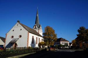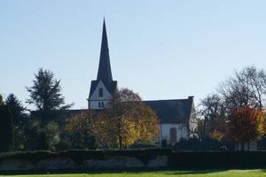 Kirche im Herbst von der Friedhofsseite